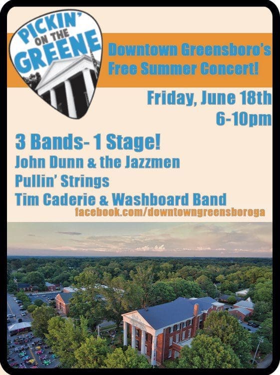 Downtown Greensboro will be hosting Pickin’ on the Greene on June 18th! Concert is free. Bring your blankets, chairs and dancing shoes for an amazing night!